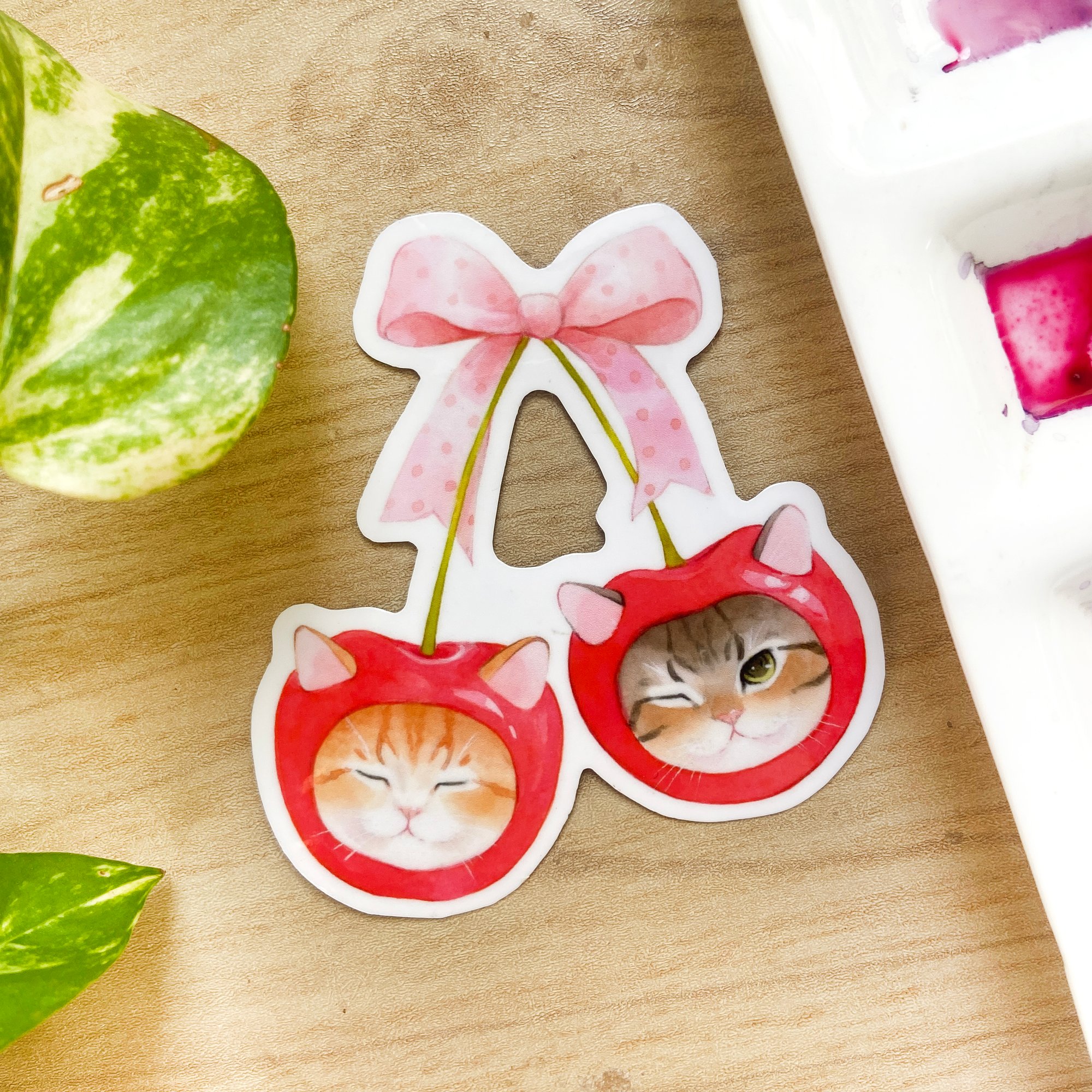 Estas pegatinas troqueladas son ilustraciones en acuarela, escaneadas e impresas en vinilo resistente al agua y su tamaño varía según la pegatina. (3" en el lado más largo)