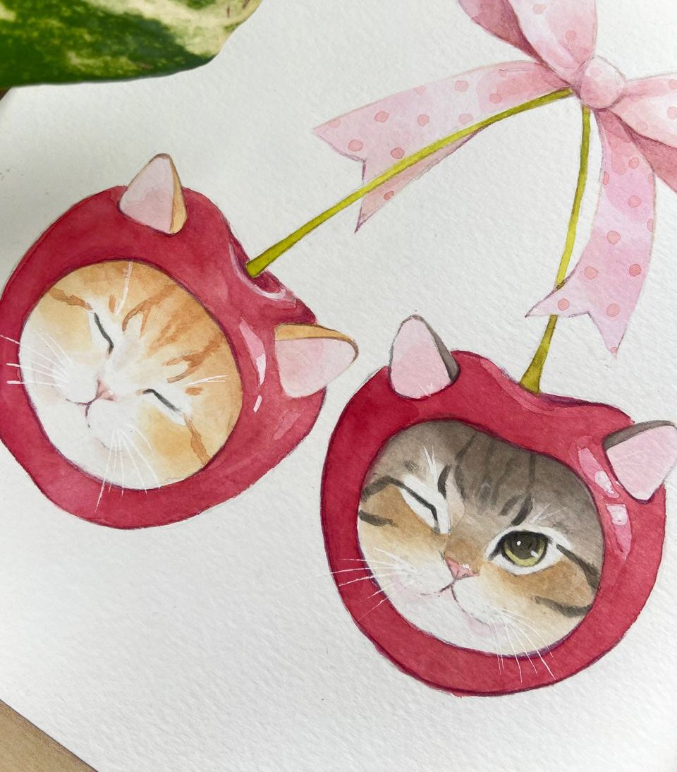 Cherry cats | Watercolor art print
