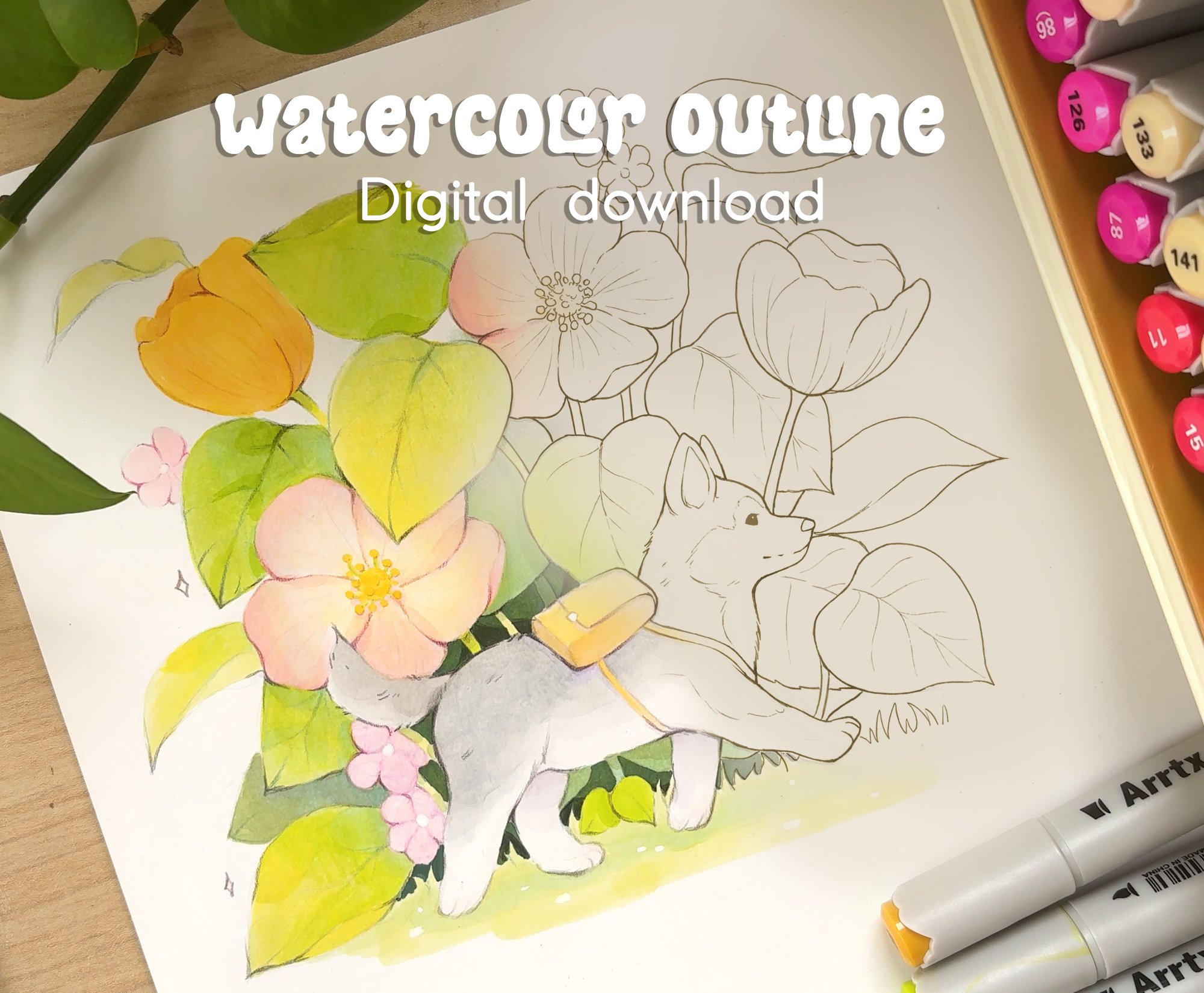 • 🤎 Brown watercolor outline – soft, elegant lines for painting directly