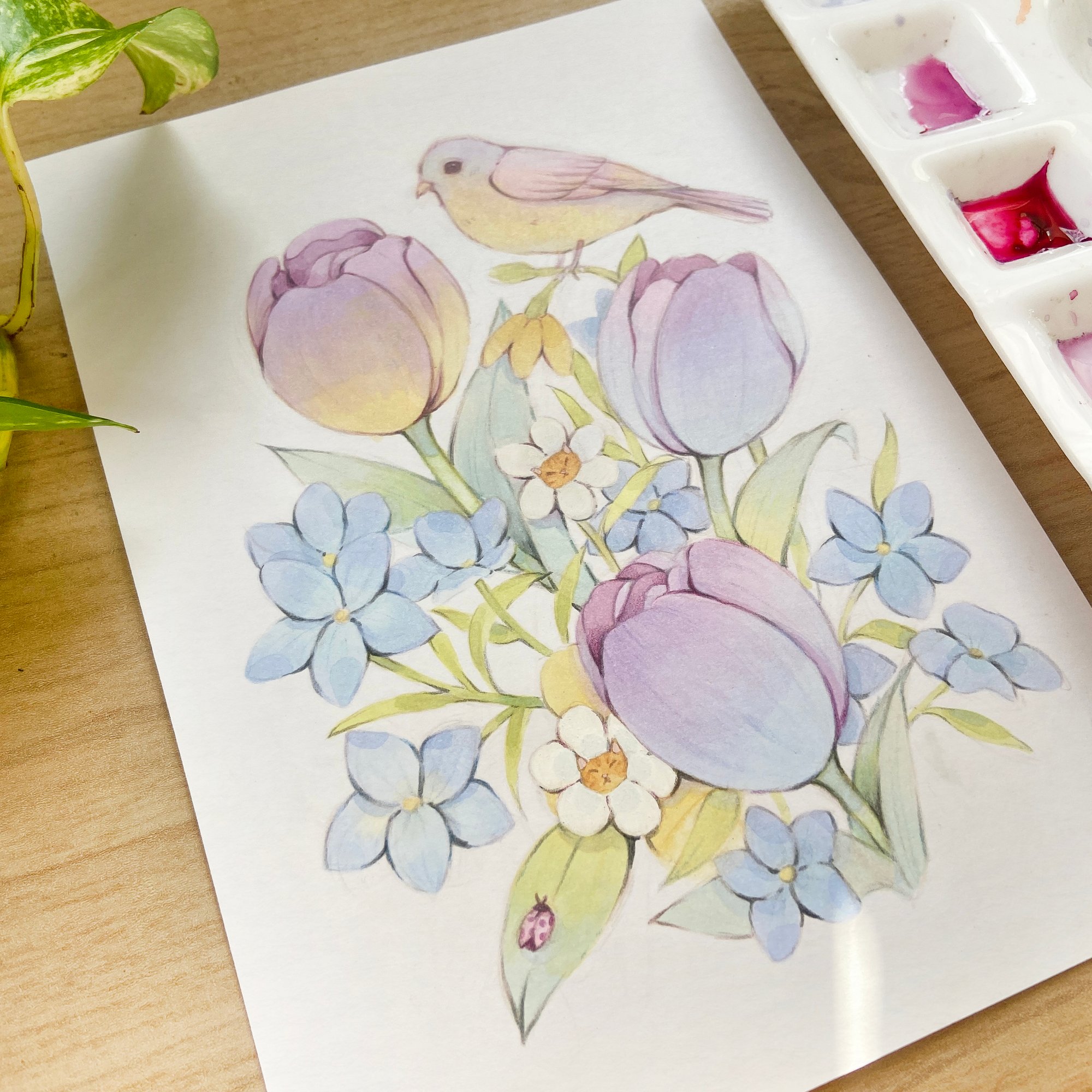 This is an art print reproduction of one of my original paintings of a cute botanical illustration..