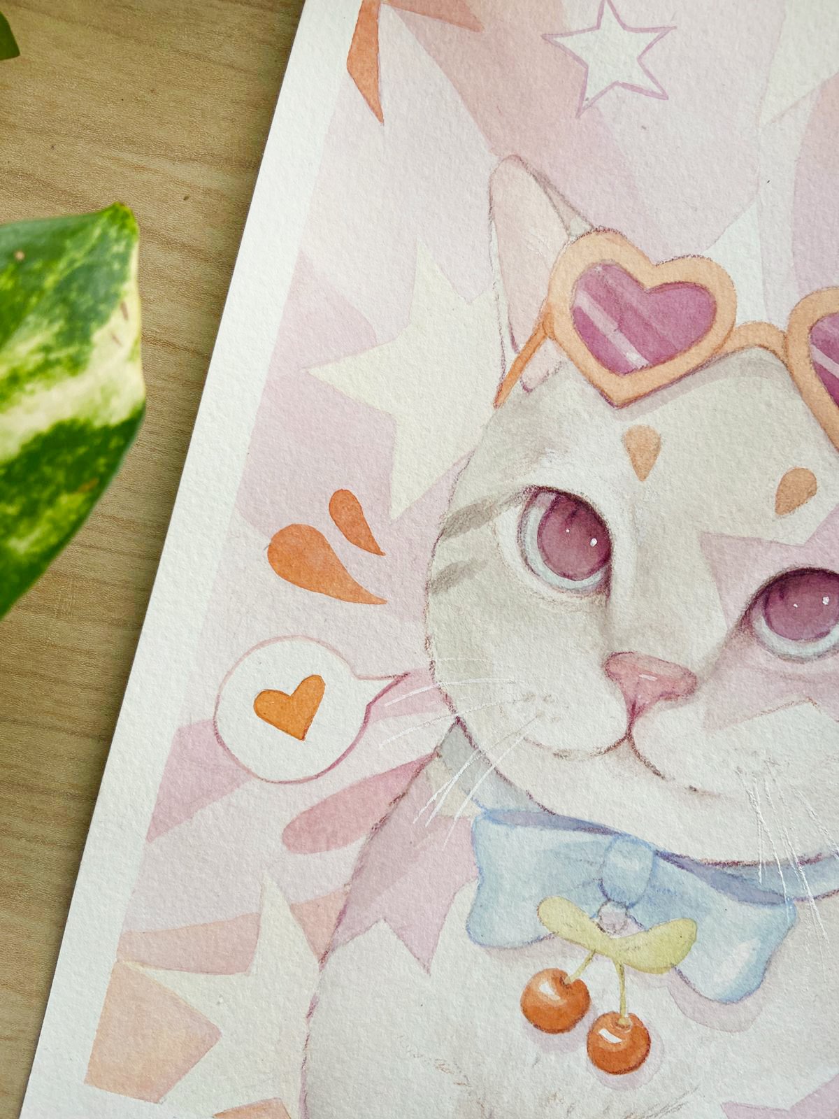 This is an art print reproduction of one of my original watercolor paintings of my Funky Cat.